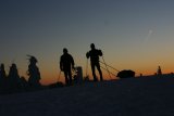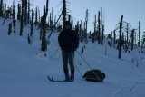 V neděli jsme provedli větší zkoušku - batohy jsme si zatížili láhvemi Dobré vody, abychom vytvořili váhu asi 20 kg a vyrazili jsme na okruh po Jizerských horách - asi 28 km v různorodém terénu jsme urazili za 6,5 hodiny, což nebyla žádná moc velká rychlost, ale měla by stačit. Oboje saně vydržely a osvědčily.