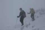 Většinu cesty po hřebeni jsme šli na sněžnicích, ale nebyly až tolik třeba, na většině míst byl sníh ztvrdlý, zmrzlý nebo odvátý. To ale určitě neplatí vždy. Na některých místech se hodily hroty na sněžnicích. Ale mačky, cepín ani jiné "ledovcové" pomůcky na naší trase potřeba nebyly.