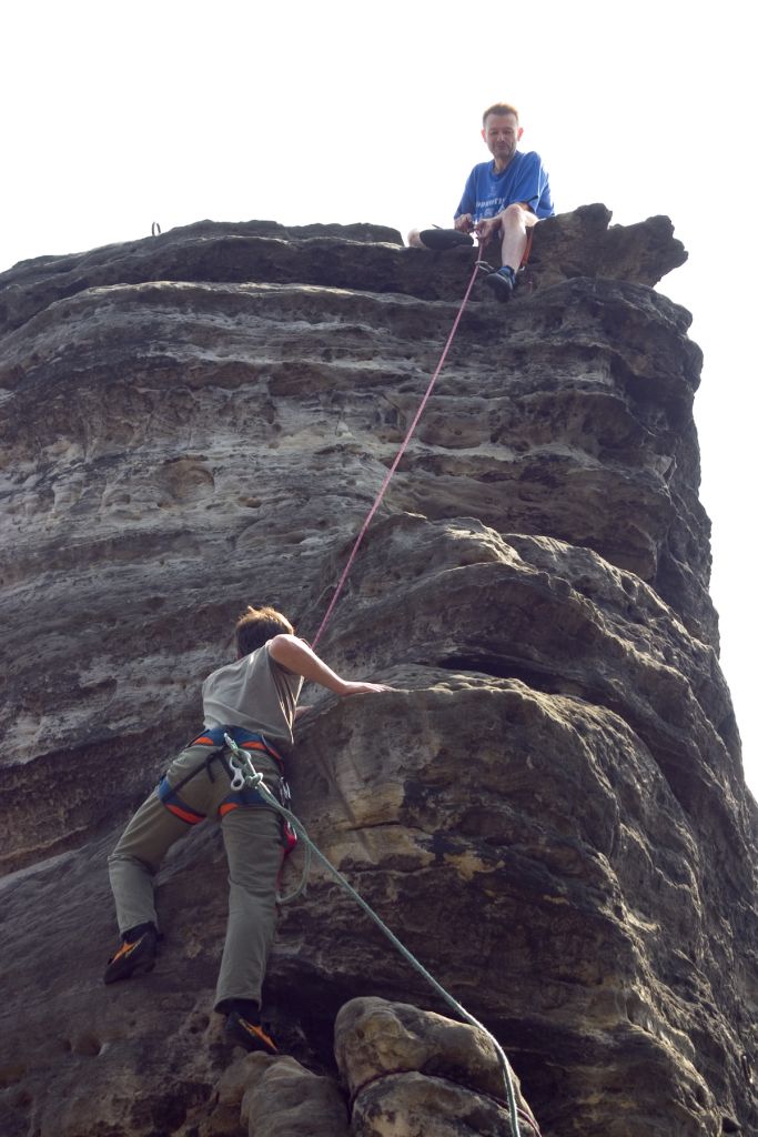 Po absolvování lezeckého kurzu v centru Mammut na umělé stěně (viz fotky) nás popadla chuť vyrazit také na živou skálu. Pomohli nám v tom Honza a Jitka Součkovi, kteří nás coby zkušení lezci vzali do Tisé.