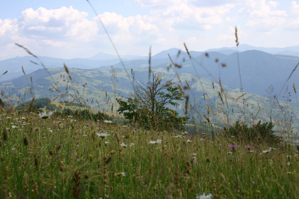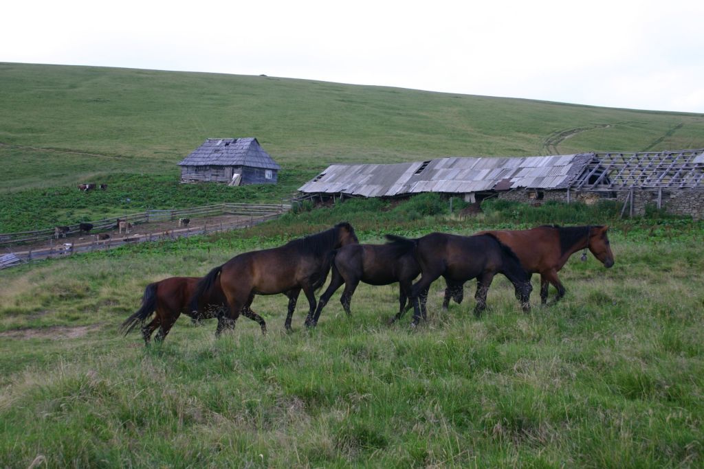 Snídani jsme si dali v jídelně, dokoupili jsme potraviny a vyrazili na poloninu Krásná (10:30). Cesta začínala přímo ve vesnici, stoupání nebylo až tak tragické a šlo se většinu doby ve stínu v lese. Polonina byla krásná, opět jsme šli po hřebeni nebo kousek pod ním, sluníčko svítilo a okolo nás se nabízely nádherné výhledy. Šli jsme kousek za horu Klimova, kde se les přiblížil hřbetu poloniny. Cestou jsme viděli několik stád a bačů, pásli ovce, krávy a koně a nijak je nerušilo, že jejich svěřenci se potulují po několika stráních. Dorazili jsme asi v 18:30 a ještě jsme museli sklesat pro vodu.
