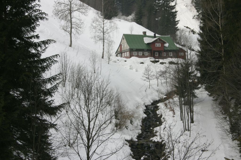 Z Růžohorek jsme šli dále k horní stanici lanovky, odbočili do svahu a lesem sjeli ke Křížovému potoku. Za námahu se šlapáním jsme byli odměněni netknutým hlubokým sněhem, prudkým svahem a opuštěným koutem přírody. Krása. Dole v údolí jsme ještě museli překonat kus cesty údolím Jeleního potoka, načež přišlo opět stoupání. Messnerovým dolem jsme vylezli na Portášky a sjeli po sjezdovce dolů do Úpy. Celý den jsme se pohybovali v hrozně malém výseku mapy, ale když člověk může opustit cesty, hory se zázračně zvětšují...