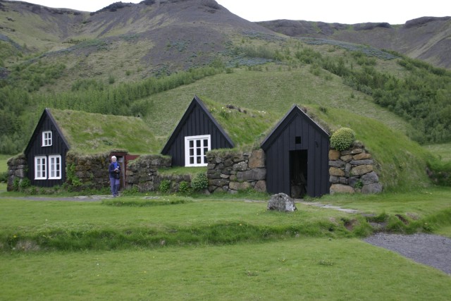 V pátek 8. 6. jsme podél řeky sešli do Skógaru. Cestou jsme míjeli mnoho velkých, malých, vysokých a širokých vodopádů a sledovali je tu shora, tu zdola. Místy byla řeka hluboce zařízlá a ve svislých stěnách kaňonu sídlily kolonie ptáků. Cesta končila u vodopádu Skógafoss. Byl obrovský (62 metrů vysoký) a nedalo se k němu příliš přiblížit, poněvadž vodní tříšť vytvářela hotový liják. U vodopádu byl kemp a opodál hostel. O kilometr dále byla druhá část Skógaru s muzeem a hotelem. Cestou jsme si dali kafe a koláček v hotelu Skógar; s překvapením jsme zjistili, že servírka je Němka na letní brigádě. Muzeum ve Skógaru nás nadchlo. Milá paní v pokladně nám odpověděla na řadu našich otázek a dala nám dobré tipy k naší další cestě. Muzeum samotné se skládalo z venkovního skanzenu, expozice v budově muzea a samostatné budovy technického muzea (2x 750 ISK). Domečky ve skanzenu byly islandsky drnové, polozahloubené a malé. Krávy bydlely s lidmi nebo alespoň pod nimi, dřevo bylo vzácné a téměř vše bylo vyplavené mořem ze ztroskotaných lodí. Nechyběla škola, kostelík domácí hydroelektrárna. Expozice uvnitř už nebyly tak překvapivé a nelišily se nijak moc od evropských. Technické muzeum mapovalo příchod techniky na Island – první auta, telegrafy, telefony, výrobu elektřiny. Čech nemůže minout Škodu 120, zařazenou v kategorii odolných aut, oblíbených na Islandu. Dnes můžete na Islandu často potkat na silnicích Škodu-Octavii.