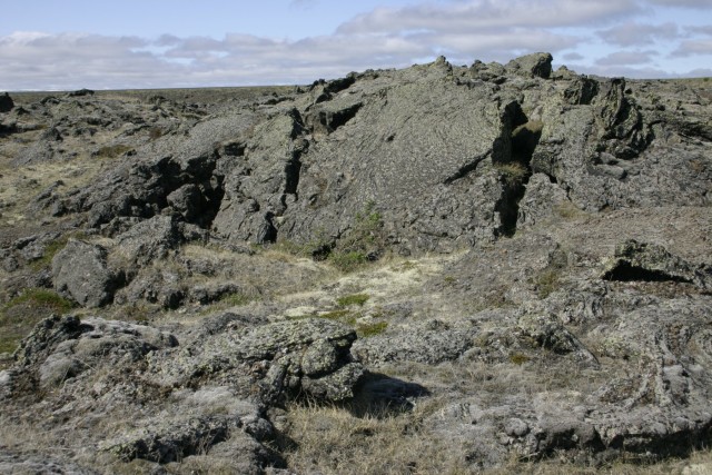 Ve středu 13. 6. jsme si půjčili auto (v hotelu Reynihlíð pobočka půjčovny Bílaleiga Húsavíkur, Toyota Yaris, 200 km v ceně 9200 ISK, další km za 28 ISK; bez příplatku vrácení v Húsavíku!) vydali se po okolí Mývatnu. Zavítali jsme k Dimmuborgiru – těšili jsme se na zajímavé lávové útvary, ale trochu nás zklamaly, snad jen Kirkja (kostel) vypadala zajímavě. Další zastávkou byly pseudokrátery (pseudo proto, že pod nimi není sopka, vznikly prskáním bahna, když pod nimi tekla žhavá láva). Ty vypadaly hezky z dálky, z blízka to byly takové zarostlé kopečky. Neskutečně nás tady trýznili malé mušky a komáři – sic neštípali, obklopovali nás v neuvěřitelných hejnech a lezli nám po obličeji, do uší, do nosu a vůbec kam se dalo. Odhánět je nešlo, sedali i na ruce. Po chvilce to dohánělo k šílenství. Roje byly na dálku vidět jako nahnědlé mráčky nad zemí. Kvapně jsme to místo opustili, objeli Mývatn dokola a pokračovali k Námafjallu. Je to tektonicky nestabilní oblast na úpatí hřebene, na které je řada výronů páry, bublajících a smradlavých bahýnek nebo bahnitých jezírek. Celá stráň je plná nezvyklých barev – bílé, červené, žluté.... Celá oblast docela silně zapáchá a Islanďané toto místo dříve označovali jako ďáblovu zemi. Kousek od Námafjallu je odbočka k sopce Krafla. Sopka je dosud činná, v okolí je možné vidět starou i novou lávu (poslední erupce v osmdesátých letech) a jezírko Stora-Viti, které vzniklo v kráteru po erupci na boku Krafly a nyní je zatopené vodou. Pod Kraflou je geotermální elektrárna, poháněná párou z hloubky 1000-2000 metrů. Vrtů je v okolí několik desítek a tak je celá krajina protkaná trubkami – daň za čistou a levnou energii.