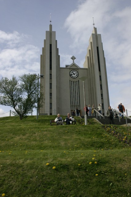 Z Húsavíku nás převezl autobus (2x 2200 ISK) do Akureyri, druhého největšího města Islandu a hlavního města severu. Žije zde 16 000 obyvatel. Ubytovali jsme se v guesthouse Súlur, zřejmě v prostorách studentských kolejí (6800 ISK za pokoj; apartmá se čtyřmi pokoji, po dvou mají záchod se sprchou a dohromady kuchyň, jídelnu a obývák). Měli jsme tu dost času a tak jsme nejdříve došli nakoupit (velké nákupní středisko) a na internet. V knihovně byl za 200 ISK za hodinu, což je na Islandu zřejmě nejvýhodnější možnost. Prostředí bylo milé a dalo se i koupit občerstvení. Procházeli jsme městem uličkami okukovali suvenýry, brzy jsme však prošli celé centrum. Zašli jsme ještě do přístavu a nakonec na večeři „ na rozloučenou“ do restaurace Bautin, kde jsme si dali velrybu a mořské plody – prosté islandské jídlo :-) (k hlavnímu jídlu byla zdarma polévka a salát; s vínem a moučníkem 7260 ISK). Islanďané si dávali opět hranolky a hamburgery.