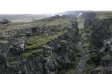 Na poznávání okolí jsme si vyhradili pondělí 4. 6. a půjčili jsme si na to auto (Toyota Yaris, společnost Budget, 5950 ISK na den, neomezené kilometry, základní CDW pojištění, jeden řidič). Půjčovna byla hned u nádraží a našeho hotýlku, což bylo báječné. U pumpy jsme si ještě koupili bombu k vařiči (VAR2 bez problémů – malá za 485 ISK) a vyrazili (asi 9 hodin) do Þingvelliru. Jeli jsme kousek po silnici č. 1 (Ring Road), pak po silnici 36 a 52 – stále ještě asfaltové silnici, pro každý směr jeden pruh. Foukal silný vítr. Minuli jsme jezero Þingvallavatn a dojeli k informačnímu centru (cca 10 hodin), kde byly letáčky a multimediální prezentace vysvětlující historii Þingvelliru a Alþingu i geologické okolnosti tohoto místa. Probíhá tu rozhraní americké a euroasijské zemské desky, každý rok se od sebe vzdalují 1-2 centimetry. Toto místo si Islanďané vybrali již před rokem 930 jako místo každoročního sněmu - parlamentu - zvaného Alþing. Od centra vede cestička na místo, kde se tábořilo, rokovalo, recitovaly zákony a jinak vládlo. Většina turistů chodí jen sem, my jsme si ale došli ještě k vodopádu Öxarárfoss a kousek za něj, odkud byl krásný pohled na průrvu. Není hluboká, ale stejně je vidět, že to místo je v pohybu. Zpátky k autu jsme prošli po louce pod recitační skálou (13 hodin). Celý den je pod mrakem a šedivo, i když překvapivě jasno. Fouká silný vítr a občas prší. Focení je nesmírně obtížné, protože než zaostřím, objektiv mám posetý kapkami vody.