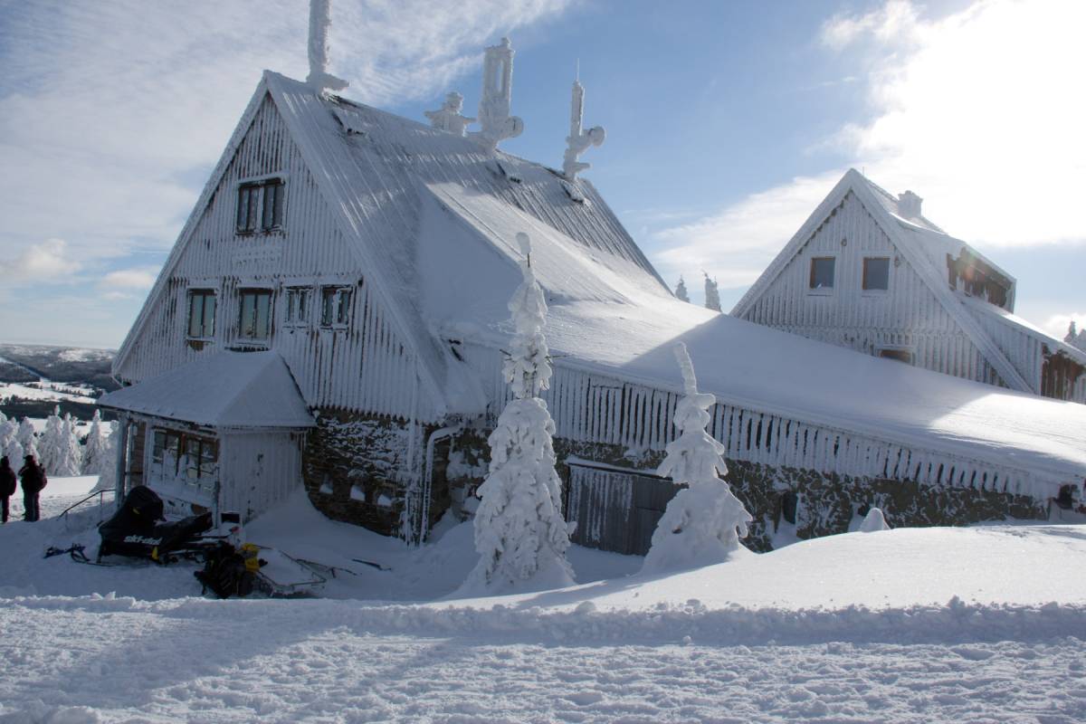 V sobotu ráno jsme se vydali po modré po hranici nahoru na Lesní hřeben. Novinkou pro mě bylo zpoplatnění vstupu do polské části Krkonošského národního parku - cedulky s QR kódem a online platbou, bohužel s velmi zdlouhavou registrací. Pro stezku česko-polského přátelství by neměl být potřeba. Poplatek je asi 50 Kč na dospělého (více informací). Na Lesním hřebeni byly nádherné výhledy na českou i polskou stranu a téměř panenský sníh a zasypané smrčky. Dál jsme pokračovali na Jelenku, Svorovou horu a na Sněžku. Sněžka byla zasypaná sněhem, na všech stavbách námraza a vstupy zaváté sněhem. Chvilku jsme pomohli odhazovat sníh od Poštovny a pak sešli dolu ke Slezskému domu na oběd. Odpoledne jsme pokračovali po hřebeni nad Malým a Velkým stavem, prošli kolem Poledních kamenů a se zapadajícím sluncem jsme míjeli Stříbrné návrší a Malý Šišák. Od Špindlerovky jsme sjeli kousek dolů a pak pěkně za svitu čelovek po vrstevnici dojeli na Medvědí boudu (500 na osobu se snídaní). Chalupa je to útulná, personál svérázný, ale milý, jen kuchyně nebyla nic moc.