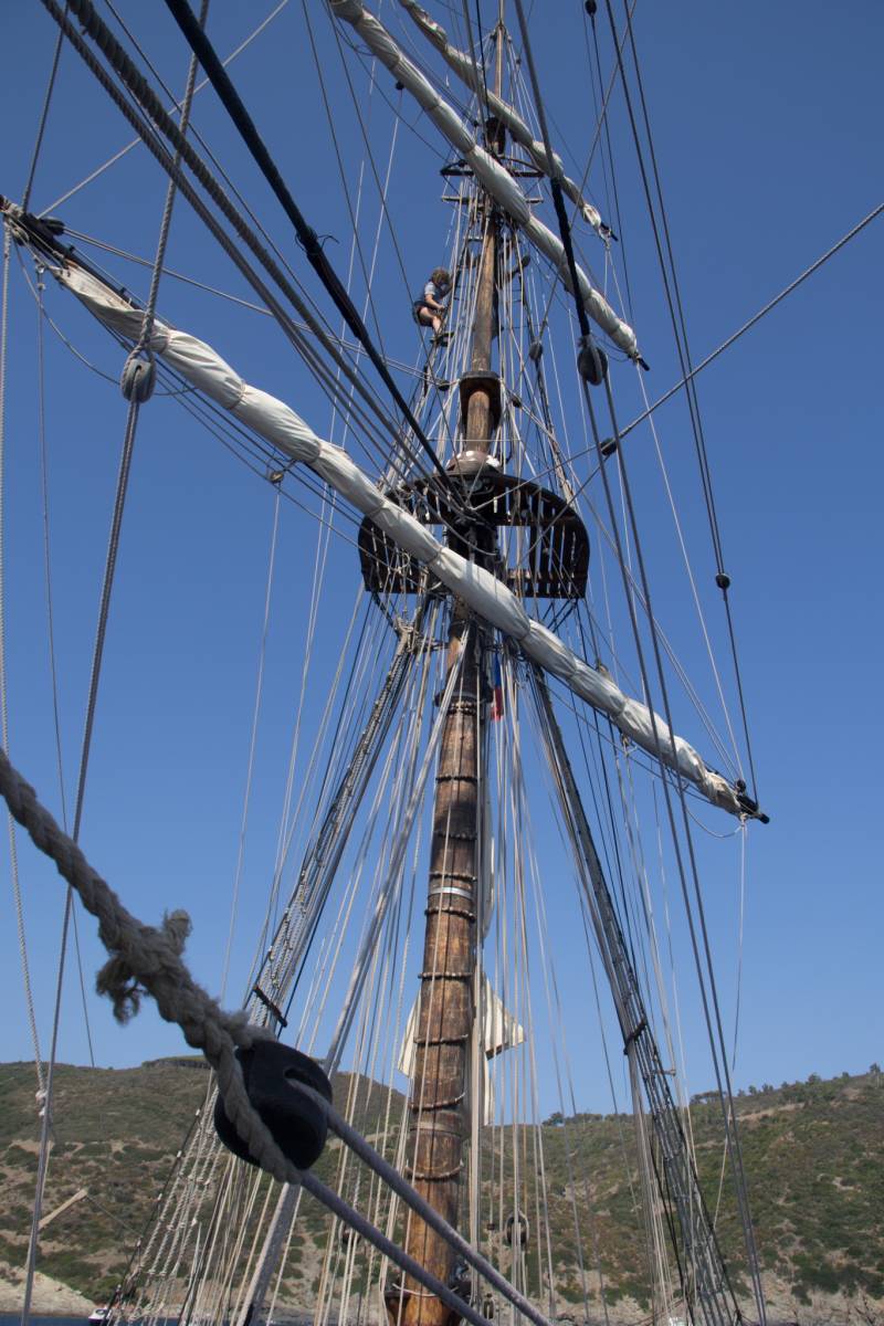 Pokračujeme v obeplouvání Elby po směru hodinových ručiček. Kotvíme před Azurovou jeskyní. Musíme k ní ale doplavat a proplavat dovnitř, což není vůbec lehký úkol, ale všechny děti to zvládly. Ještě těžší plavání nás čeká později, když jedeme zkoumat vrak lodi. Vítr dělá vlny a stále nás strhává. Nicméně části vraku jsou 2-3 metry pod hladinou a tak není problém si na něj sáhnout i bez potápěčské výzbroje. Vrak jsme si prohlédli, ale některé děti se vrátily na loď na pokraji sil. Loď zoceluje! Filip a Aleš si pod vedením Medvěda vyzkoušeli i opravdové potápění. Plujeme dál. A náhle se na palubě zjevuje Jean Bart. Na různých plachtách, ráhnech a dalších prvcích lodě jsou upevněny kartičky s písmeny. Je potřeba názvosloví správně přiřadit, vložit do zprávy, vyřešit jednoduchou šifru a už je tu zpráva: „Klíč se nachází za obrazem Augustina Heřmana“. Šup do salónu a máme další klíč! Ovšem co to?! Na truhle jeden zámek zase přibyl?! Ano, to Pepa Dvorský, pra-pra-potomek Augustina Heřmana jeden zámeček přidal. Povídal pak dětem příběh o lodi a veleúspěšném kapitánovi Heřmanovi, který se z českého Mšena vypracoval na korzára, obchodníka a kartografa. Následoval kontrolní kvíz, který děti hravě zvládly a za odměny dostaly klíč k zámečku. A opět se zjevuje Francis Drake. V ráhnoví je rozmístěno 14 klíčů a každý námořník musí jeden snést dolů na palubu – někdo si troufne na košové ráhno, někdo jen kousek nad palubu. Přenocovali jsme v zátoce na severní straně Elby. A s piráty dnes ještě není konec! Za tmy se zjevuje Awilda, která po mladých pirátech vyžaduje znalosti souhvězdí.